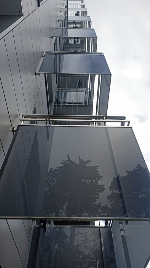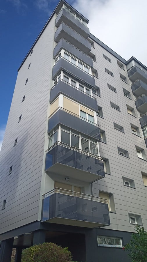 A destacar la instalación de barandados de inox y vidrio, así como los tendederos volados, que confieren un aspecto muy uniforme y elegante a la fachada.